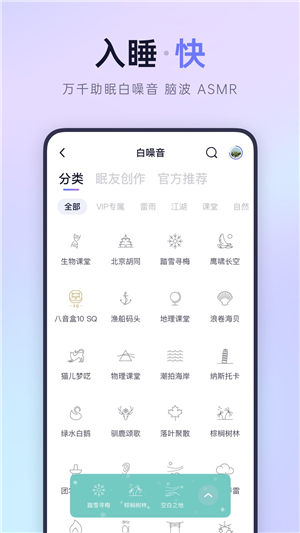 3、丰富的助眠内容,搭配全新内容推荐算法和睡眠检测算法,好睡眠触手可得。