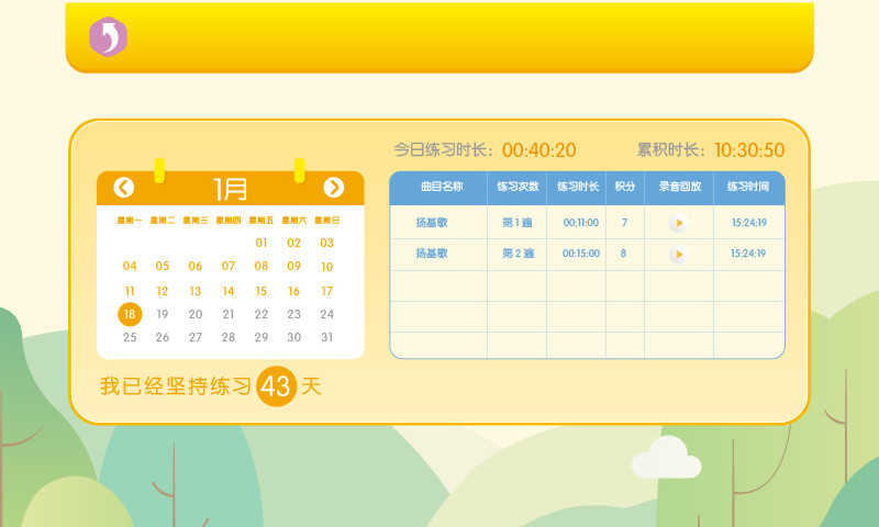 1.课后陪练单跟进:孩子练琴效果一目了然,保证练琴质量,记录成长。