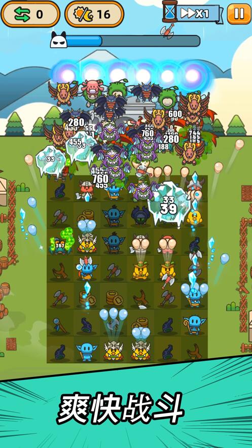 你喜欢Q版画风吗?你喜欢轻松自在的游戏体验吗?你喜欢充满随机性,极富探索性的游戏内容吗?那么就来勇闯要塞手游官方版下载吧,拥有着肉鸽,塔防以及合成元素的勇闯要塞手游官方版下载,将能够一次性满足你的所有需求!在画风上采用了较为Q版,精致的风格呈现的它,给到我们的游戏体验真不可谓不丰富;在这里,你将率领手下的上百位不同样貌,有着不同技能设定,能够在战局在进攻防御中发挥出不同作用的英雄们与那一位位来犯的怪物们进行战斗,守护好身后的这座城堡便是你唯一需要去做的事情,而期间,伴随着我们的军队实力人数越来越多,对手的能力也将越来越强,所以这个时候单纯的人数压制已经不行了,得要走偏方——合成战斗!