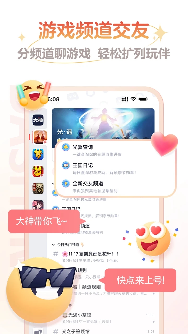 一键绑定你的游戏角色,游戏内外互通,随时随地都可以与好友、帮会畅聊;还可记录游戏生活、创作脑洞大开的作品,与世界分享游戏的快乐!