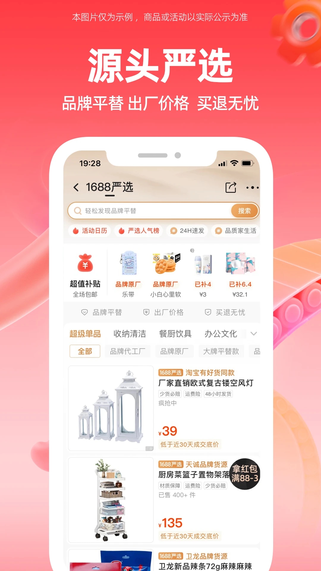 阿里巴巴app最新版是一款非常大型好用的批发市场的应用软件,阿里巴巴app最新版上的功能真的非常的棒,都是特别的给力的,大家在这里就是能够放心的进行进货的,比较的可靠,当然这里都与淘宝,天猫,微店等各种各样的平台进行了合作,满足你们的各种使用需求的,这里也是汇聚了大量的产品,种类丰富多样,大家都能够在这随意的进行挑选,真的都是特别的实惠的,让大家在这里都能够挑到各种各样的好货资源,还都是支持大家在这里一件代发的,超级的方便,大家需要各种的货源,都能在这得到满足的,绝对是大家需要进货的好帮手,全都是进口的好货,源头直供的,各种新品好货,都在这里任由大家挑选的,还能实时的和旺旺沟通的,及时解决各种业务问题,大家快来下载看看吧!