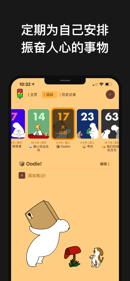 超——可爱的事件记录类型手机软件“小熊数日子app手机版下载安装”,不管你是本就很有计划有规划的用户,还是最近才刚刚想要开始学习计划规划生活的群体,都是很不错的选择!能够通过当中的记录模块来对指定日期需要完成的事件进行提前的描写,可以是明天,可以是后天,也可以是未来半个月,一个月甚至更久的规划,书写相关的文字,选择符合主题的壁纸,然后将小熊数日子app手机版下载安装置于桌面之上,这样就不用在后续的查询中还要打开软件了,直接在桌面就能很直观的看到自己距离对应的日期还有多远,直接就能看到自己今天还未完成的事情还有哪些,这样就不怕会有遗忘了,稳!当然啦,期间也能够通过它的其他模块来向桌面输送更多的小组件来丰富,来充实,实用性还是高的~