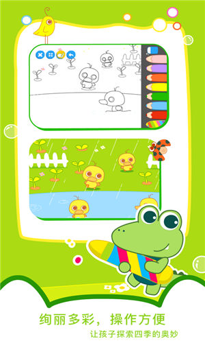 贝贝绘本app官方版是一款千万家长推荐的优质绘本app,支持用户通过ios及android手机进行使用,为用户带来极为舒适的阅读界面。在这里有着多主题的阅读资源,设计了很多与大自然密切相连的内容。并且平台将不同季节的画面以绘本的方式展示给大家,让孩子们亲自参与涂色,加深孩子们对不同季节的印象。贝贝绘本app官方版集有声及图文绘本于一体,让孩子们可以在这里自由看书、听书。并且在平台中孩子们还可以为自己喜欢的绘本进行配音,打造个人专属的绘本资源。