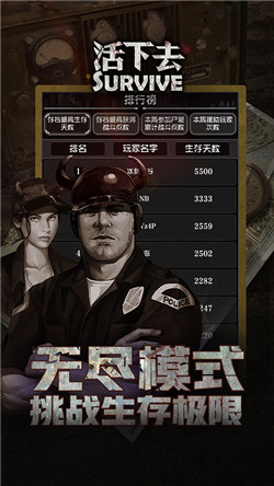 活下去游戏官方下载是一款末日求生类游戏,在这款活下去官方游戏下载中,你将面临来自四面八方的危险以及末日时不可测的人心。在这里,不需要不动脑子的莽夫,不需要没有胆子的弱者,这里需要的是你的胆大心细、有勇有谋,这样才能带领你的角色在末日中活得更好。当小心翼翼的你不消息惊动了成群结队的丧尸大军时,不要犹豫,跑为上策。玩家需要做的是在如履薄冰的同时,收集材料壮大自己,并一步步的拥有强大的武器,让自己拥有更强的战斗力,这是末日生存的绝对法则。不仅如此,玩家还要发现一个个藏在黑暗之中的线索,从而发掘出隐藏在背后那硕大的阴谋。相信我,这是一款让你上瘾的游戏,快进入这个充满丧尸的末日世界吧,挑战你的极限!