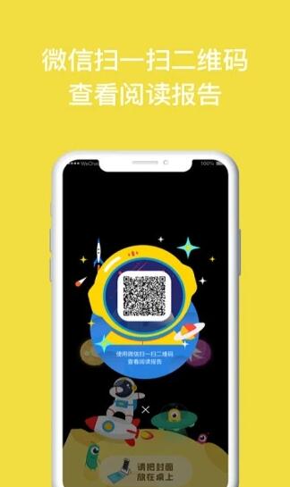 触屏弹窗显示阅读报告二维码,家长可扫码随时查看阅读报告,了解孩子阅读情况