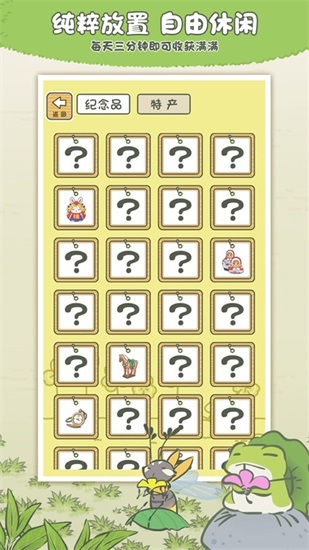 旅行青蛙解锁版大全是一款非常治愈的休闲游戏。在这款旅行青蛙解锁版大全中你可以领域到一只非常可爱的小青蛙,这只小青蛙可能会经常自己回去玩,你可以等着它自己回来,当它旅游回来它还会给你带回来各种土特产和照片,好玩又有趣的一次体验,相信玩家们也可以更加轻松的享受哦。感兴趣的话现在就可以来下载这款旅行青蛙解锁版大全了哦。