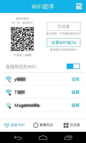 WiFi助手下载官方下载是一款非常实用的手机WiFi管理工具,WiFi助手下载官方下载这款软件功能强大,可以轻松地帮助用户解决手机网络卡顿,告别网络“卡”、“慢”、“掉线”等问题,使用这款软件,可帮助你一键连接wifi、分享wifi、免费解锁wifi和二维码扫描并连接wifi等,无需密码自动连接50米内信号最强的Wifi,还可以给好友分享,给身边更多的人使用。另外,这款软件的设计非常的简单,界面简洁明了,上手没有任何的难度,超级方便的,在追剧,刷抖音,看综艺再也不用担心流量不够用啦,从此告别流量上网!感兴趣的小伙伴们,还在犹豫什么呢,赶紧下载,现在就来使用WiFi助手体验吧。