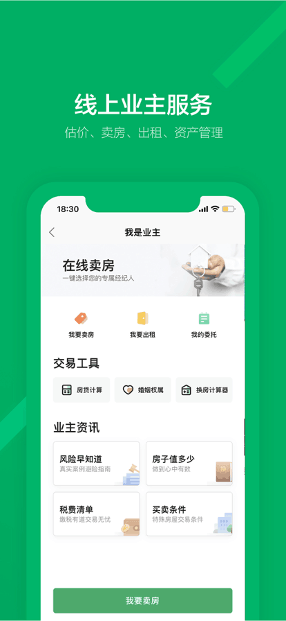 3、线上业主服务,估价、卖房、出租、资产管理