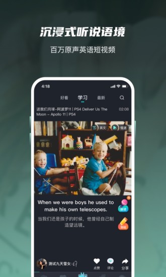 1.英语原声短视频任你刷,每日更新大量新鲜视频,提供真实的英语语境