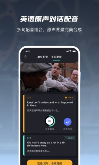 2.原声视频随时跟读,模仿原声AI打分,让你的进步看得到