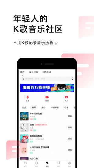 唱吧手机客户端是一款中更多顶级音乐作品等你体验的手机软件。唱吧手机客户端内部你能见识到各种无损音质的音乐金曲原声大碟,保证精彩时刻体验。支持多种风格的翻唱录制,让你能在线展示自我特色,丰富的伴奏曲库让你能跟着节奏在线把控众多录制细节,并且还有高质量的音效加持,让你能翻唱作品看上去更加的高大山。一键修音软件让你不在因为自己是个音痴而感到自卑,在线一展歌喉选择的你演绎方式,各种酷炫的短视频和MV等你随时体验哦,并且还能在线包房和众多好友在线K歌享受欢乐,众多家族等你加入体验,热门比赛值得你的参与,如果你也是喜欢音乐爱好者,不妨点击加入软件中来吧。
