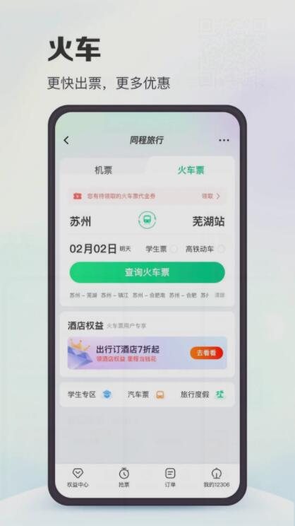 同程旅行app官方下载安装最新版是一款让每个用户出现变得更加方便的手机出行旅游软件。用户在同程旅行app官方下载安装最新版中可以自由选择自己想要出游的目的地,软件支持购买火车票,飞机票,汽车票和船票等,让用户可以自由选择自己出翔想要乘坐的交通工具。为了让用户出行变得更加实惠,软件中还推出了非常多的活动,例如有机票盲盒和火车票盲盒,让用户可以花费固定的价格来抽自己所在地都其他地方的机票或者火车票,抽到满意的目的地就可以兑换,如果抽到不太喜欢的地方也满意关系,可以直接退出,无损来抽。喜欢这款软件的小伙伴快来下载吧!