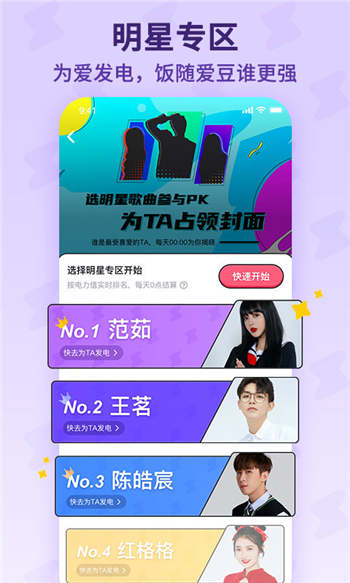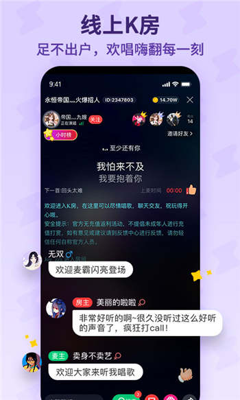 酷狗唱唱斗歌版红包版是一款1V1K歌排位的交友软件,在这款软件中,用户可以一展自己的歌喉,利用自己动人的歌声和其他用户进行斗歌,提升自己的排位名次。酷狗唱唱斗歌版红包版提供1v1刺激排位玩法,实时在线PK,提升自己K歌段位的同时,还能够结识更多的歌友,K歌交友一站式搞定。酷狗唱唱斗歌版红包版拥有海量伴奏,并且自带修音功能,你想唱就唱,特色的线上K房,让你足不出户就能享受嗨到极致的欢唱乐趣。酷狗唱唱斗歌版红包版每天还会发布各种玩赚任务,完成这些任务可以获得金币奖励,这些金币支持体现,唱的越多,赚的也就越多。邀请新人好友下载软件参与斗歌,也有额外现金大奖可以领取哦。