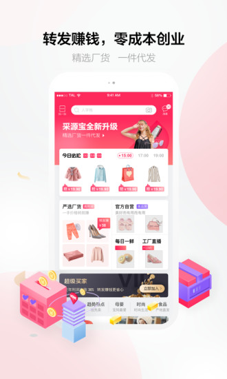 采源宝APP官方下载是一款很好用的软件,微商是一个很赚钱的职业,这个职业也是最少的创业模式,这款软件就可以直接帮助用户将创业成本降到最低,在这款软件中用户可以将软件中的所有商品都直接转发到微信朋友圈中,这款软件其实更像是一个零售批发平台,但是这款软件中的价格绝对是可以超乎用户的想象的,都是从厂家直接出来的优质货品,所以用户在这款软件中就可以轻松实现进货以及发货的过程,在这款软件中用户就可以将货源这个事情快速的解决了,同时这款软件中还会为用户保密货物的收发地点,让这款软件成为用户的私密货源,不会泄露给其他的用户,同时在这款软件中是可以直接从软件中发货给卖家的,用户都不用接手,如果你喜欢这样的软件的话那就赶快点击采源宝APP官方下载试试看吧。