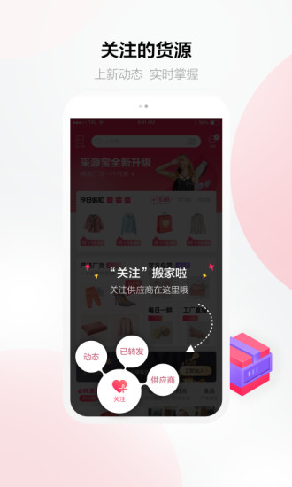 1、用户通过采源宝app,不仅可以迅速补充货源,实时更新店铺中的商品。