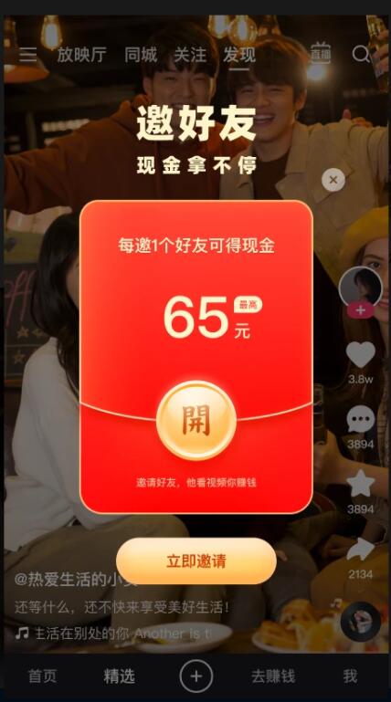 可以邀请好友,转发分享自己的链接,邀请好友参与浏览短视频。