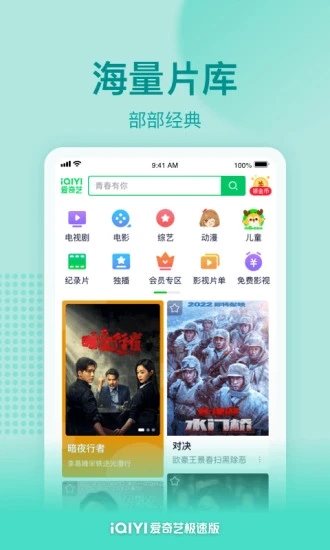 爱奇艺极速版下载2022安卓最新版是一款拥有海量、优质、高清在线视频播放的app,爱奇艺极速版下载2022安卓最新版本中整个界面非常干净整洁,软件里里面有各种资源板块,如动漫,动画,电影,综艺,娱乐,新闻,电视剧,教育等等,根据你的需求自由选择,实时更新最新的电视影视资源,用户可以根据你的兴趣爱好,自由关注收藏喜欢的影视作品,有最新的更新手机第一时间进行更新推送,有需要的小伙伴赶紧下载来试试吧。
