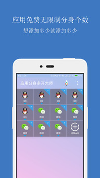 应用分身大师多开版一款正经的移动设备多开辅助软件,让你的移动设备能运行更多的同一款软件,并且现在该软件经过优化,运行更加稳定了,安全流畅,更可靠。应用分身大师多开版安全稳定,无标题!免费版头像大师应用头像工具,所有应用都可以免费打开,头像不限。应用分身大师多开版显示的微信头像,安全不封。实现多个微信头像同时在线,比其他微信头像更安全、更稳定、更流畅!现在还在全网寻找移动设备多开的小伙伴们,现在就来试试本站现在提供的软件安装包吧,一定能惊艳到你的体验。