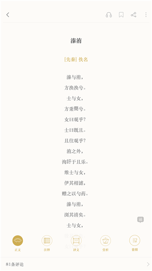 提供唐诗、宋词、元曲、古诗、楚辞、全唐诗、全宋词等经典之作,帮助你学习诗词的注解、释义和鉴赏。它像一条精神的长江、灵魂的黄河,对人民潜移默化,陶冶情操,哺育了一代又一代的华夏子孙。