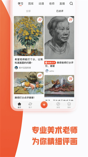 美术宝艺考最新版是一款为美术艺考生提供多样学习服务的手机软件。不管是初中还是高中学生,只要你想进行美术艺考,就可以前来使用这款美术宝艺考最新版。首先,用户可以在软件内搜索到丰富的美术教学课程,还有大量的真题试卷和专题练习等你来做,如果想学习动漫,也可以在软件内找到相关的资源。其次,用户还可以在软件内找到全国各大知名美术院校的专业老师来为你点评美术作品,只需要拍照上传,老师就可以选择进行文字、语音或者视频的方式进行点评。最后,如果你想要了解更多的美术艺考知识,例如院校选择、专业选择、考试规则与时间等信息,可以在美术宝艺考最新版上面查询浏览。欢迎广大美术艺考生用户前来下载体验。