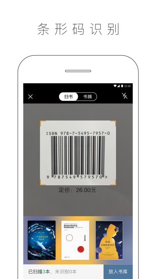 1、只需扫描条形码就能对纸质书籍进行导入,帮助用户快速的整理书籍,建立专属的书房;