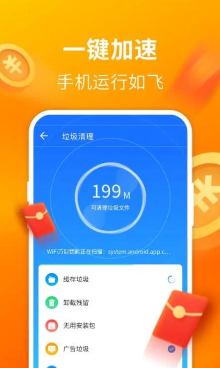【实用功能】随时WiFi功能,一键手机变热点;流量统计实时查看流量消耗;垃圾清理,一键提升手机内存。