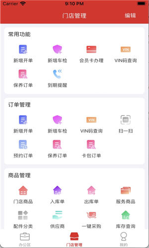 3、会员管理、库存管理、开单管理、车检报告。