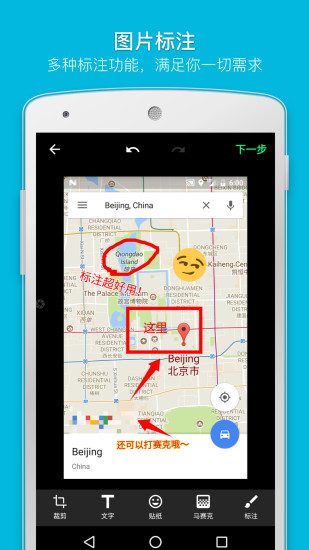 2、图片标注功能:为用户提供不同类型的标注工具,涵盖了裁剪旋转,添加马赛克,文字,全能标记等功能,使用便捷高效;