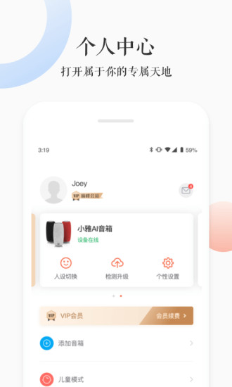 · 「语音识别」小雅APP会实时记录你与小雅音箱之间的对话,通过APP你可以帮音箱纠正错误的识别,让你的音箱变得更聪明。