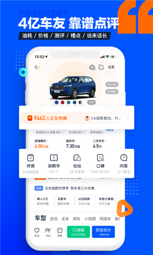 汽车之家官方版这是一款专业的用户购车软件。它为消费者提供了多种多样的服务,比如选车,买车,用车,换车等,可以实行便捷的一站式服务。其中,它每天都会更新海量的热点资讯,让汽车知识更加全面,而且拥有专业的编辑团队,众多汽车公司都在上面发布,我们可以和他们进行交流,也可以和用户进行交流,实现用户之间的互动。其中上面也有许许多多的买车优惠政策,它拥有上万家4s店在这款软件里面,商家竞争十分激烈,也可以让消费者方便比对价格。里面也有许许多多网友的真实评论,还有汽车的价格口碑,聊天室等等,我们可以和他们互动,了解更多更加真实的汽车信息。我们也可以在这款软件里面享受违章保养和油卡充值等服务。赶紧点击链接下载汽车之家官方版吧!您想要的汽车在里面等你哦。