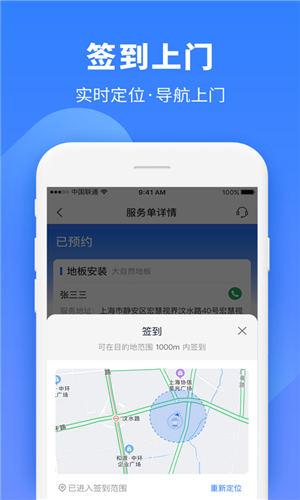3、定位导航,特色的定位系统,自动为你匹配最近的订单,找路寻路。