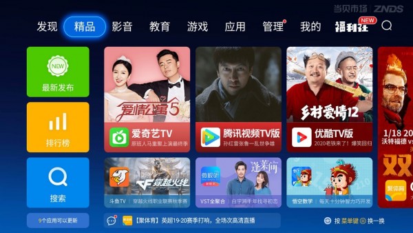 1.精品推荐:收录了近千款应用和游戏,全部都是电视专属版应用。应用不在多而在精,每一款应用都是为您精心推荐