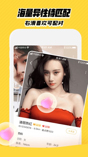 4、颜值速配:高颜值聚集地,左滑无感右滑心动,互相喜欢即可开始聊天约会!