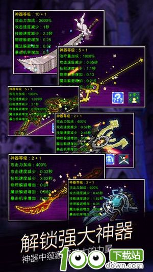 每个英雄都有一把传说中的神器,用资源可以升级这些强大的神器。
