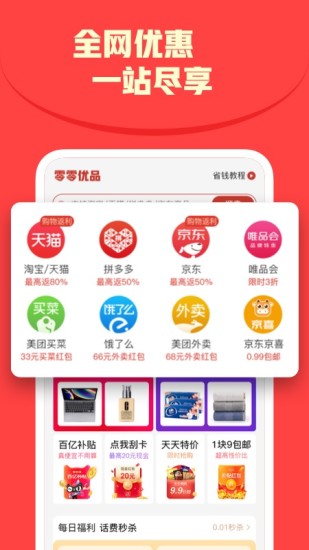 1、【全网低价】汇聚全平台品类商品,价格透明可对比,爆款商品一折抢