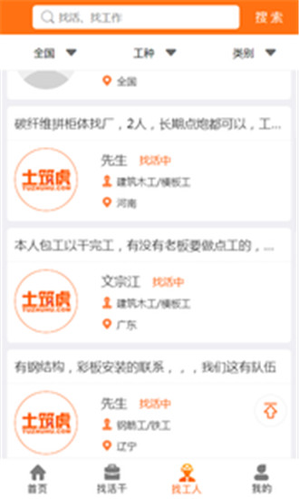 “土筑虎找活”是一款由深圳土筑虎网络科技有限公司自主开发的APP,适用于建筑工地劳务招工找活.致力为项目用工方及广大工友提供方便靠谱的线上招工找活平台,让供需双方彻底摆脱招工难、找活难的烦恼. “土筑虎找活“是一款劳务招工找活应用,连接数百万建筑工友、班组、施工队和建筑施工企业、劳务公司,帮助工友轻松找到好活儿,帮助用工方快速找到靠谱工人.