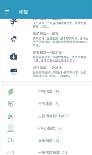 3、app的界面简洁大方,可以清晰查看所有天气信息,为你提供丰富的生活指数,让用户自由查看了解。