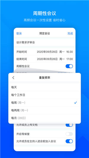 - 界面清爽简洁,一键预约、发起、加入会议;