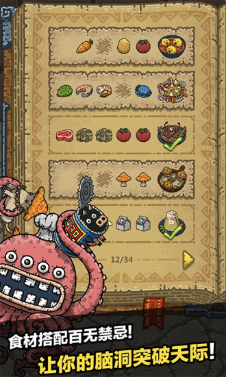 黑暗料理王最新内购版是一款你可以制作别人完全不知道是什么材料制成的食物的游戏,在这款游戏中,你可以在世人都不知道存在的地下怪物世界展开怪物食材的收集,在将怪物的素材收集完成之后,玩家们就可以返回地上人类世界,将怪物的素材进行人类食物化处理,让从怪物们那里获取的素材进行黑暗制作。在黑暗料理王最新内购版这款游戏中,玩家们可以使用怪物们下的蛋,怪物们身上的肉,怪物们的眼球,怪物们的身体等这些怪物素材来进行奇葩到让人生理不适的食物烹饪,在这款游戏中,当怪物的材料消耗即将消耗干净之前,玩家们就可以再次进入怪物生存的世界展开材料的收集,再次进行奇葩到不行的食物烹制。