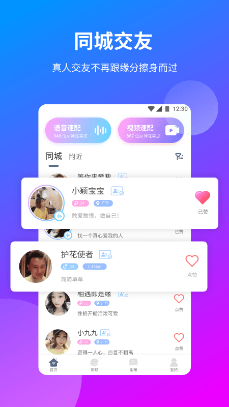 一花交友app是款精简实用的同城交流聊天时间平台,该平台的所有会员都是完全的实名制认证登记的,所有小伙伴们都能放心大胆的在上面交流互动,完全的无需担心安全问题。一花交友app更是款可靠的在线约会软件,平台拥有完善的智能大数据,会根据你的兴趣爱会推荐同你兴趣相投的小伙。进行更加深入的心灵探讨沟通,让你在一花交友app找到生活的乐趣,并找到最终的灵魂伴侣。还等什么现在选图网就能免费提供该资源的下载了。