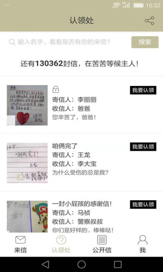 2、如果与对方无法联系或忘记手机号码,信件就会进如认领区,等待认领;