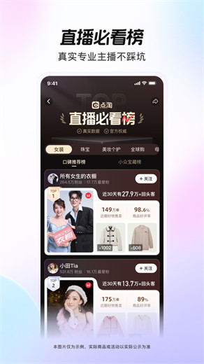 点淘app正版是一款非常不错的直播带货应用。点淘app正版专注提供各类直播,纯娱乐的只是少数,更多的是带货的,至于是食品,护肤品,宠物,还是母婴的,各位可以自行挑选!软件中存在不少的直播分类,大家可以按照自己的需求进行筛选,或者直接搜索你比较信赖的主播进入其直播间看购物车呢!软件人气还是不少的,只要人气够旺,红包基本也是少不了的,当然是给观众们的福利啦!至于能不能抢到,靠网速也靠运气,反正感兴趣的话大家可以通过上方按钮快速下载呢,希望对你有帮助哦!