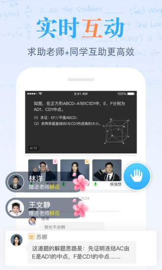 2、人人可学:支持多人同步面对面授课和学习。人人都可参与课堂互动