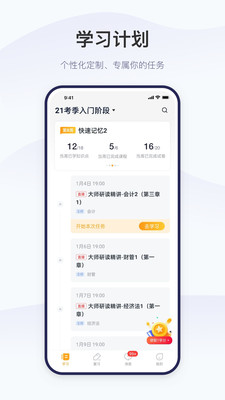 1、定制学习计划:根据自身情况为您量身定制学习计划,学习计划将以任务的形式呈现。