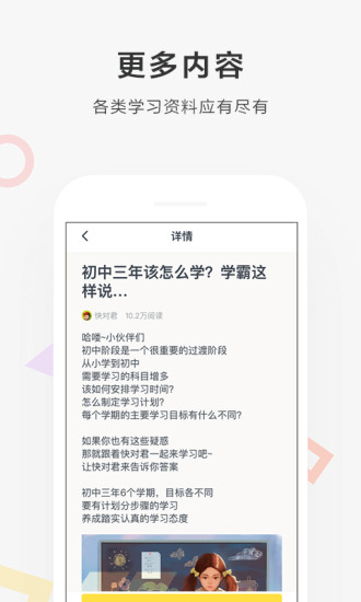 快对作业是一款致力于为中小学生提供最优质的作业解析服务的线上学习APP。快对作业拥有海量的作业资源,各学科的资源丰富多样,全方面满足学生们的使用需求。快对作业只要是要条码模式就能快速得出解析过程,还有多中搜索模式随心选择,教材和练习题库实时同步更新,帮助学生提高成绩。