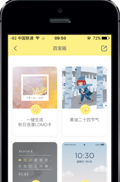 而百宝箱里都是比较有意思的生成器,台词卡、壁纸都可以自己DIY。