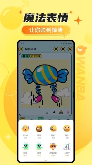 玩吧2021最新版是愉快非常好玩的社交软件。下载注册用户超多,深受资深社交爱好者的喜爱和追捧。系统功能全面,功能板块分类明确内容丰富多样。引领新时代社交的潮流,用户随时随地在线聊天。线上游戏玩法多样,超多游戏技巧操作使用嗨不停,满足各类游爱好者的娱乐需求。玩吧2021最新版这里有心有灵犀的你画我猜,灵魂画手悉心作画,考验你的眼力和判断力。亦真亦假的狼人杀游戏,用声音互飚演技,聚齐有趣的小哥哥小姐姐一起玩。遇见玩吧,带你玩转社交世界。魔法表情让你帅气的上场,迷倒万千少女。世界好无聊,玩吧拯救你。找到与你志同道合的好友。面对面加好友,还能遇见你梦想的那个ta。下载玩吧2021最新版,一起愉快社交快乐玩耍。