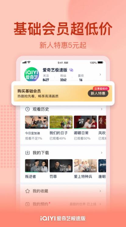 爱奇艺极速版下载安装2023是一款很多手机内存小的用户都会下载使用的手机视频播放软件。爱奇艺极速版下载安装2023拥有与原版爱奇艺一样的视频内容和功能,但软件的体积会比原版软件来得小,并且使用起来更加流畅,更加节省流量,让手机内存小的用户也能下载使用本款软件来观看爱奇艺的视频内容。软件中还有专属视频推荐,能够给家用户平时观看的视频来给用户推荐一些用户会喜欢看的视频,让用户在使用软件的过程中都不想要专门去搜索就能看到自己感兴趣的视频内容,非常方便。觉得这款软件还不错的小伙伴快来下载吧!