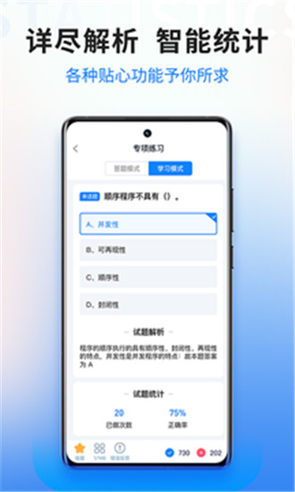 1、平台智能为用户记录做题次数,还有题目的准确率,让用户知道自己的效率;