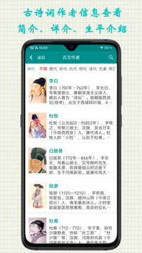 1、收录了海量古诗词、古文名句、古诗词作者等信息,内容涵盖各朝代的经典诗词古文著作;
